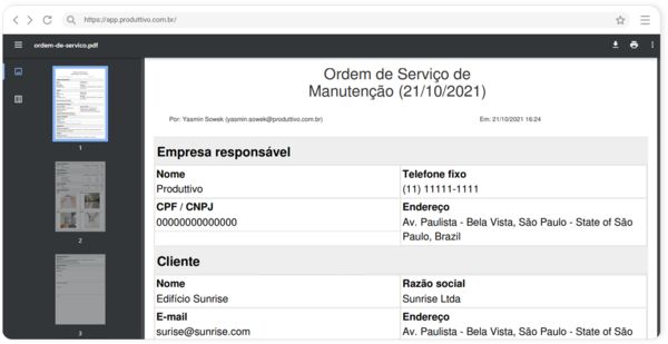 No software de ordem de serviço do Produttivo as informações da empresa, clientes e ativos são preenchidas automaticamente, sem demandar qualquer esforço dos técnicos.