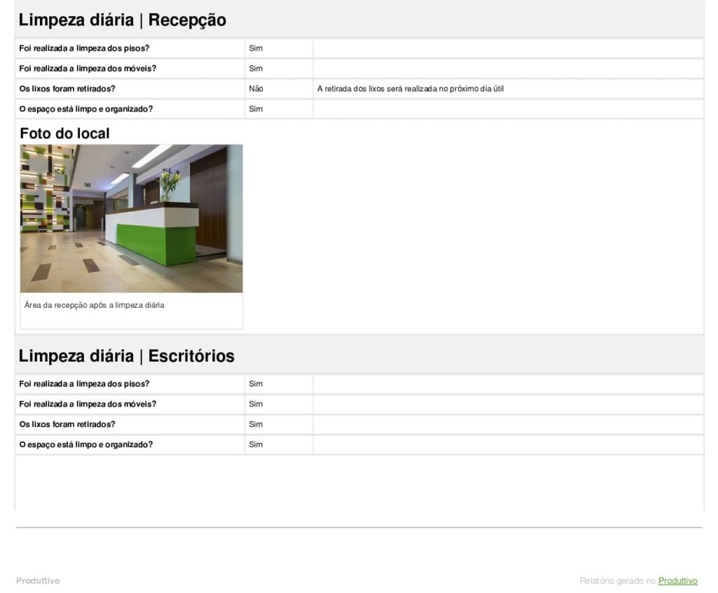Veja um exemplo de check list de limpeza desenvolvido no sistema Produttivo e exportado em PDF: