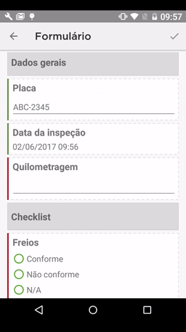 No caso de serviços em campo, uma sugestão é reunir componentes próximos na mesma seção, assim o técnico faz a inspeção de uma vez só, em vez de ficar indo e voltando para acompanhar uma sequência ilógica. Veja um exemplo de um modelo de formulário do Produttivo: