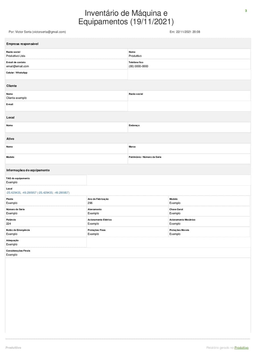 Veja só como fica o inventário de máquinas do Produttivo preenchido dentro do sistema: