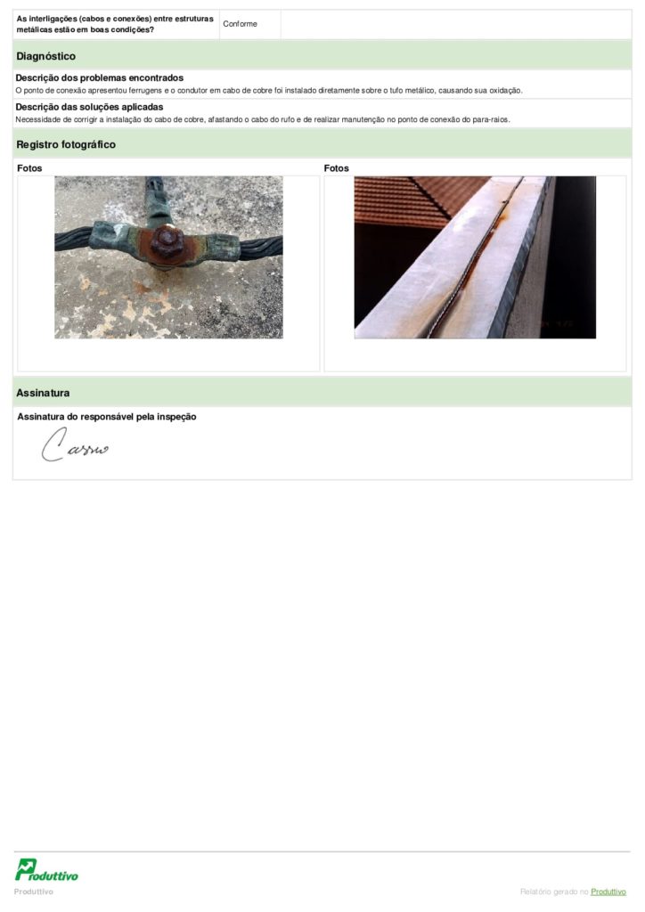 Abaixo temos um modelo de checklist de inspeção gerado no Produttivo que pode ser usado e personalizado de acordo com o seu segmento e necessidades de verificação: