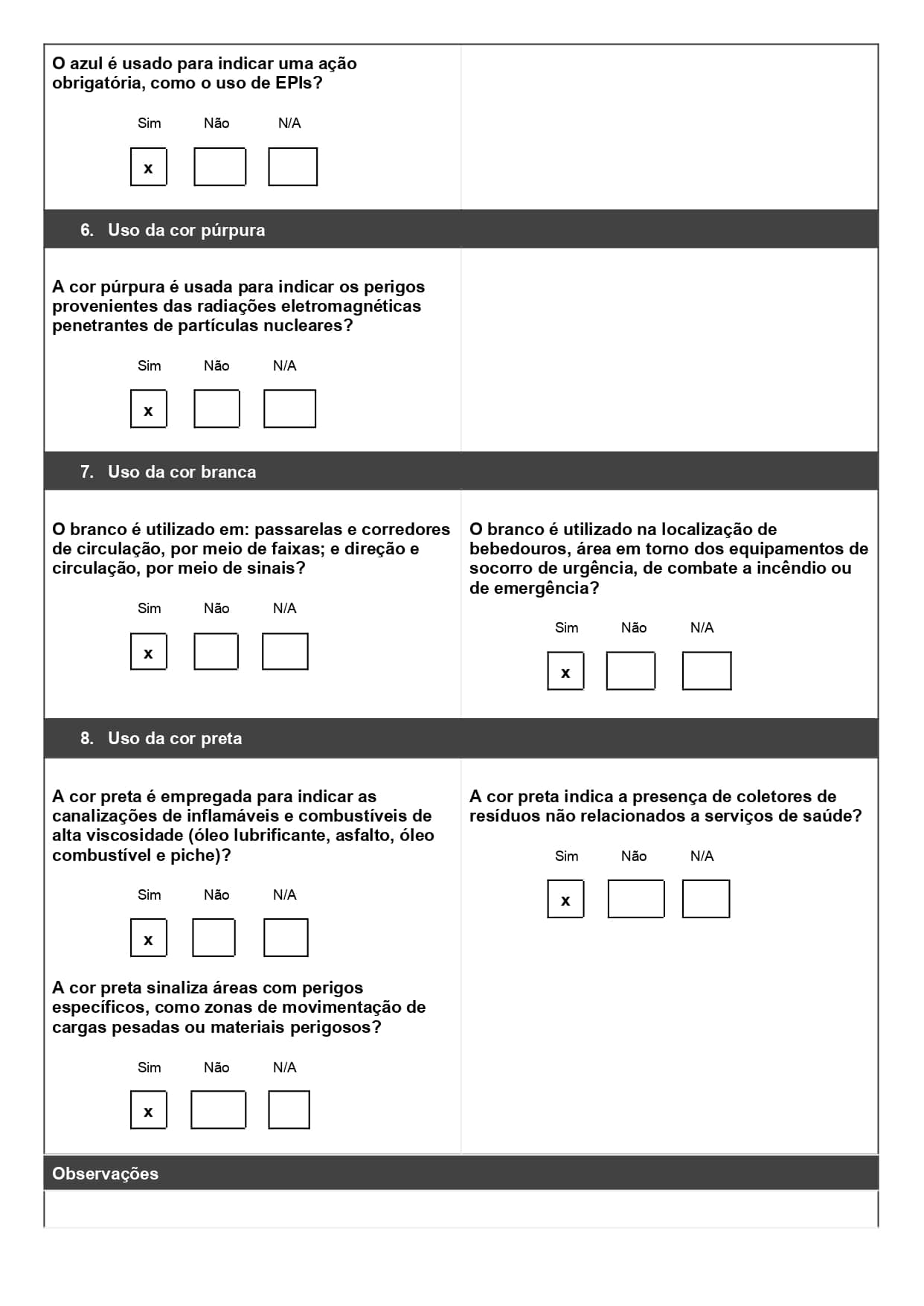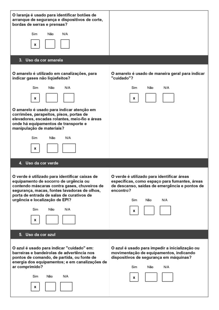 Veja, por exemplo, um checklist aplicado na segurança do trabalho: