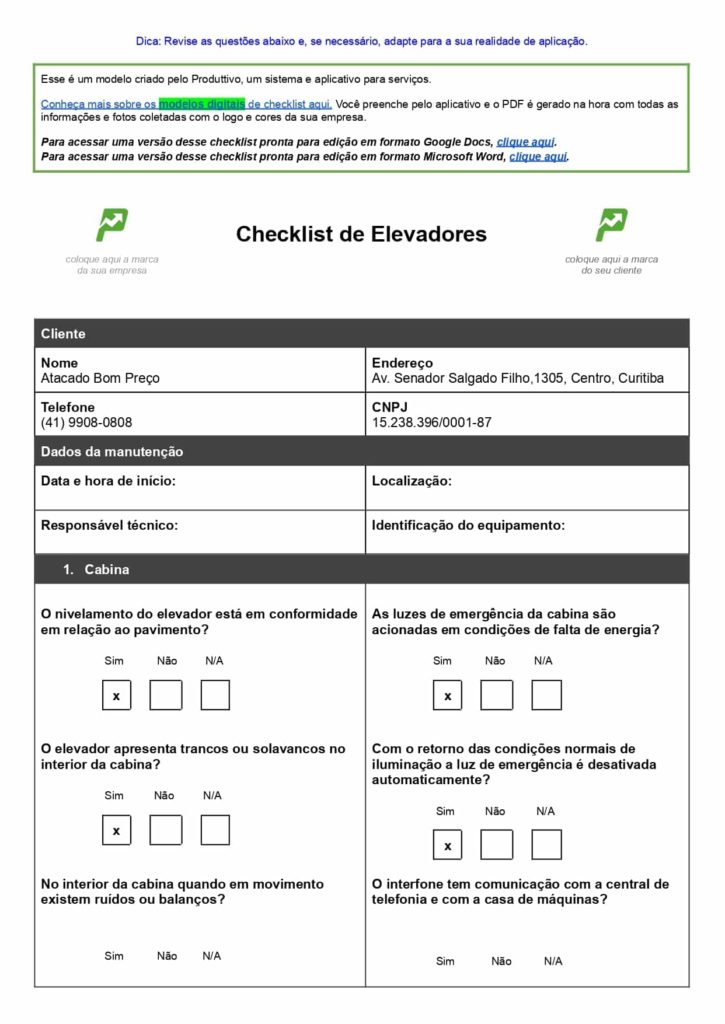 Baixe gratuitamente: Checklist de elevadores em Word + 22 modelos