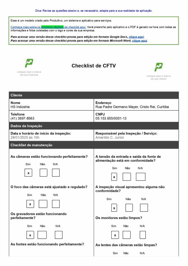 Baixe gratuitamente: Checklist de CFTV em Word + 22 modelos