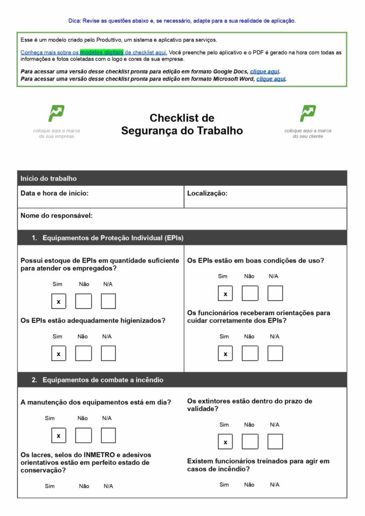 14. Modelo de checklist de segurança do trabalho