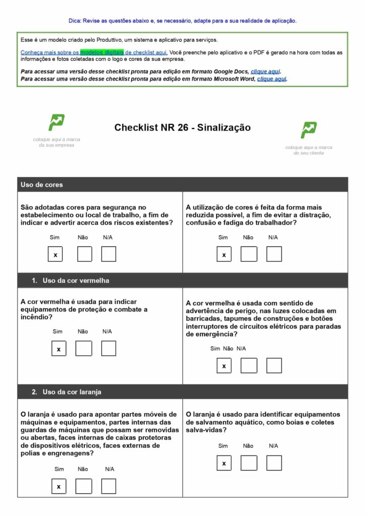 Baixe gratuitamente: Checklist NR-26 em Word + 22 modelos