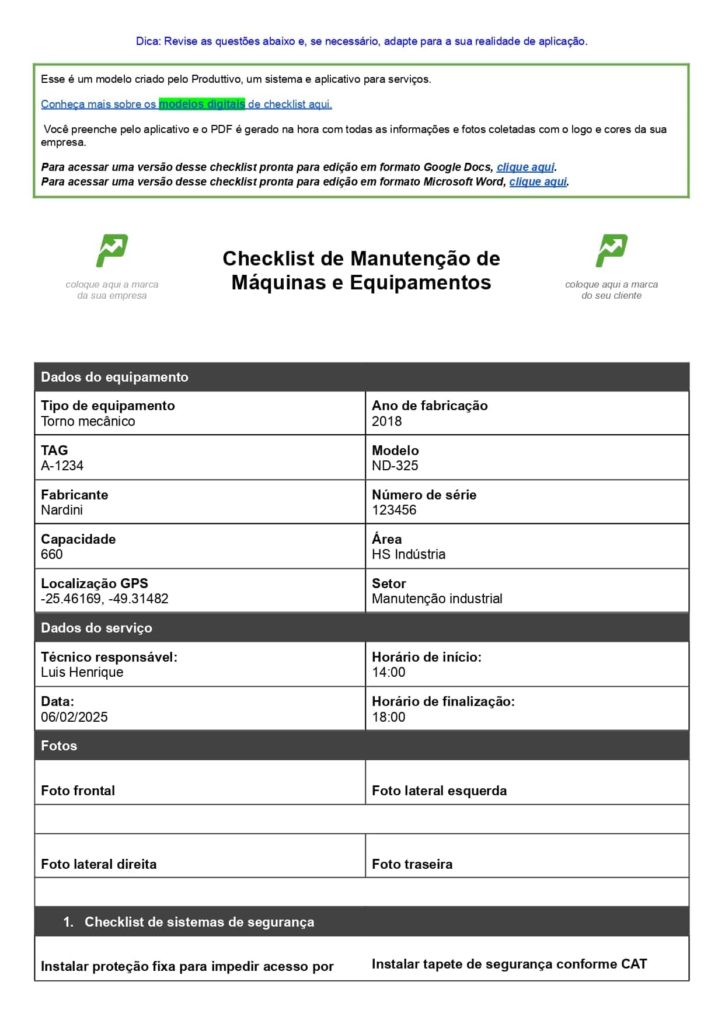Baixe gratuitamente: Checklist de máquinas e equipamentos em Word + 22 modelos