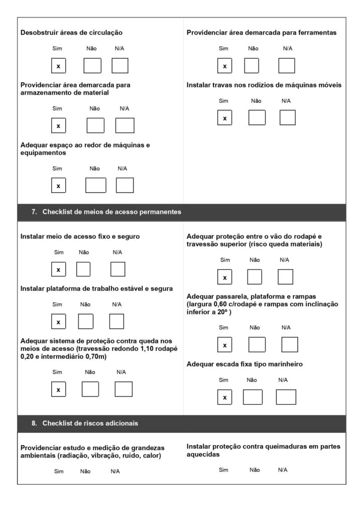 Também chamado de checklist de máquinas e equipamentos, esse modelo possui os principais itens da norma NR 12, como: