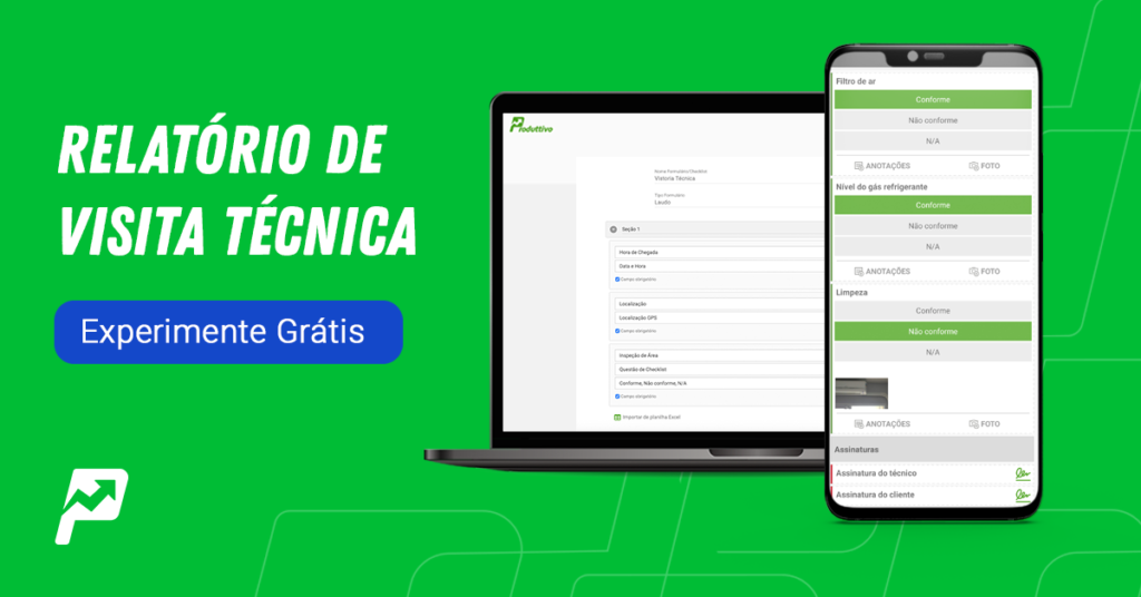 Para fazer seu relatório de visita técnica em posto de gasolina, você pode investir em um sistema digital, como o Produttivo. O sistema permite criar relatórios personalizados conforme as suas necessidades, digitais e automáticos, sem a necessidade de fazer preenchimentos à mão e passar pro computador.