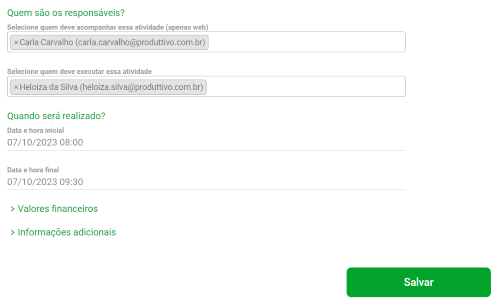 Em sistemas digitais como é o caso do Produttivo, a ordem de serviço começa com a criação de uma atividade, na qual são definidos detalhes como: formulário que o técnico deve preencher, cliente, data de realização e demais instruções necessárias para a execução do serviço. Veja um exemplo: