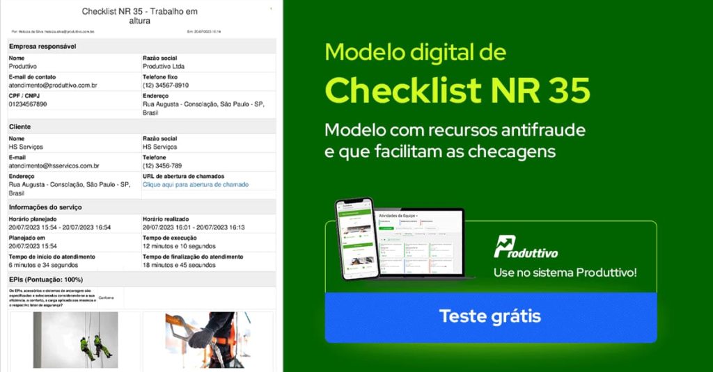 Veja também: Modelo digital de Checklist NR-35 para trabalho em altura